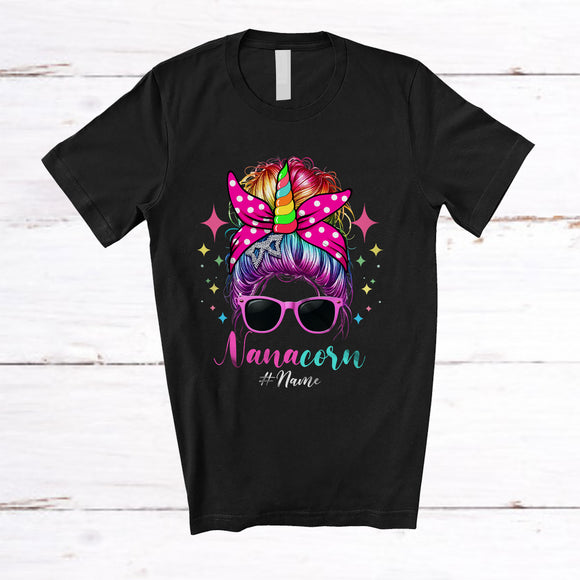 Personalized Mamacorn; Adorable Mother's Day Unicorn Custom Name Nana Messy Bun Hair T-Shirt