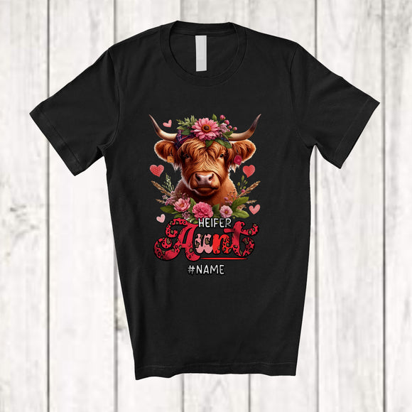 Personalized Heifer Auntie; Lovely Mother's Day Highland Cattle Cow; Floral Custom Name Farmer T-Shirt