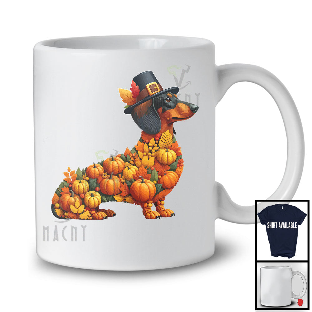 Autumn Pumpkin Pilgrim Dachshund Shape; Wonderful Thanksgiving Fall Leaves Dog Owner T-Shirt