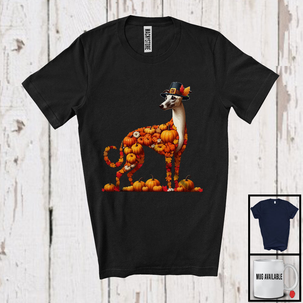 Autumn Pumpkin Pilgrim Whippet Shape; Wonderful Thanksgiving Fall Leaves Dog Owner T-Shirt