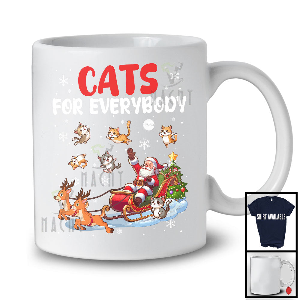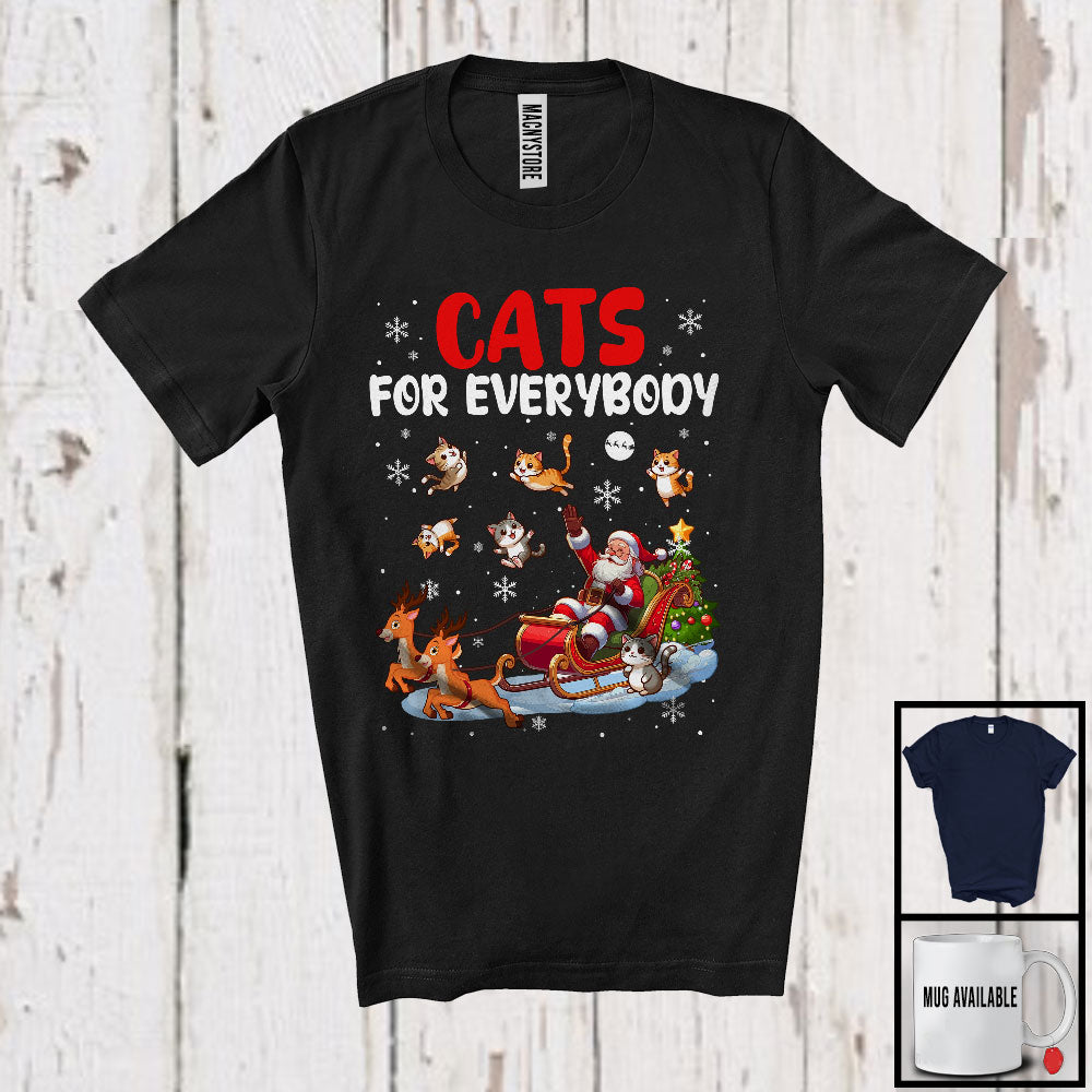 This Cats For Everybody; Amazing Christmas Santa Riding Reindeer Cat Sleigh; Snowing X-mas T-Shirt is great idea gift for your family, friends in this birthday, christmas, mother's day, father's day, patrick's day or any holiday.