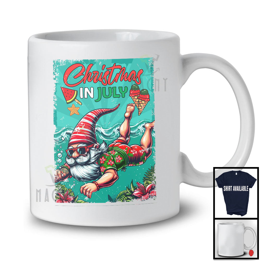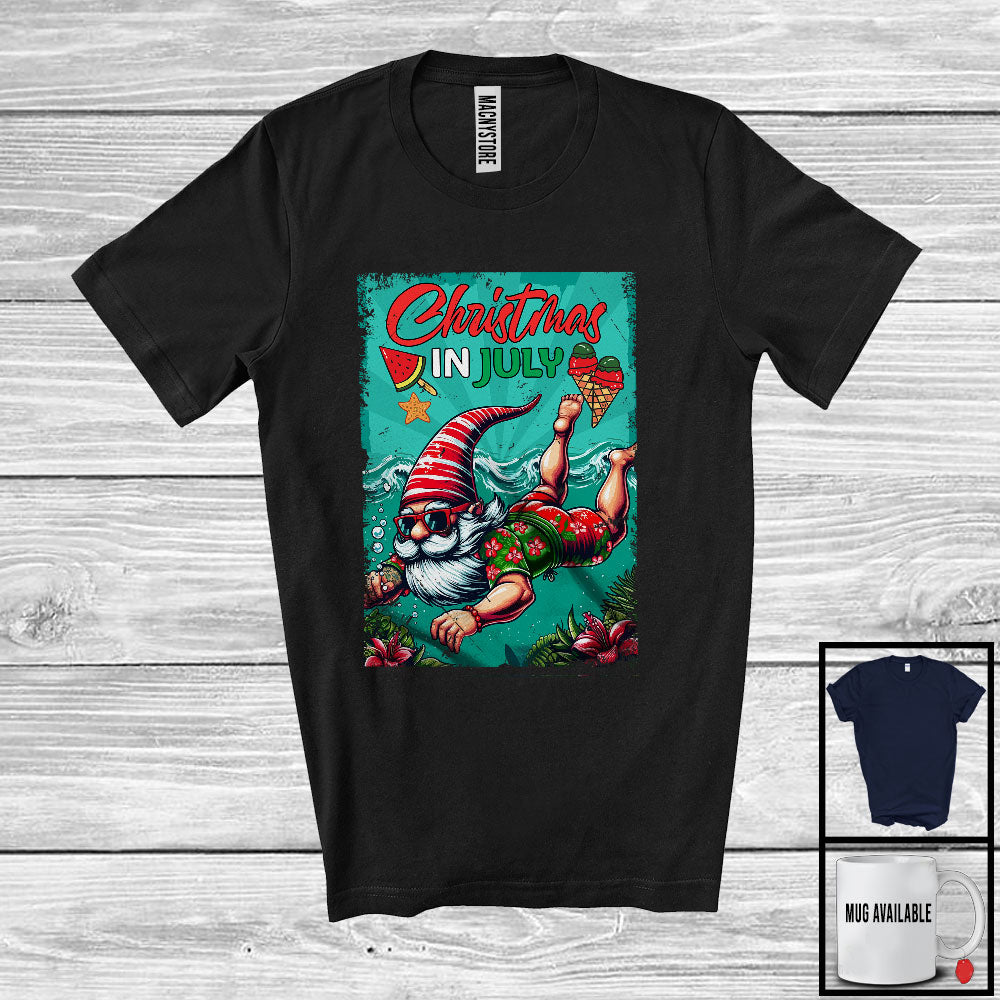 Christmas In July, Awesome Summer Vacation Santa Gnome Diving, Ocean Marine Scuba Diving Lover T-Shirt