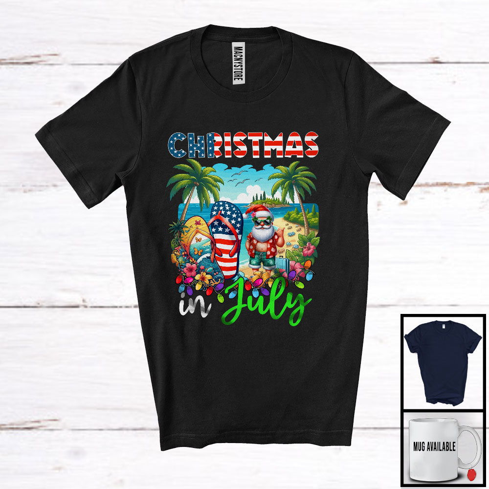 Christmas In July, Colorful Summer Vacation Santa X-mas Lights, Sea Beach Lover T-Shirt