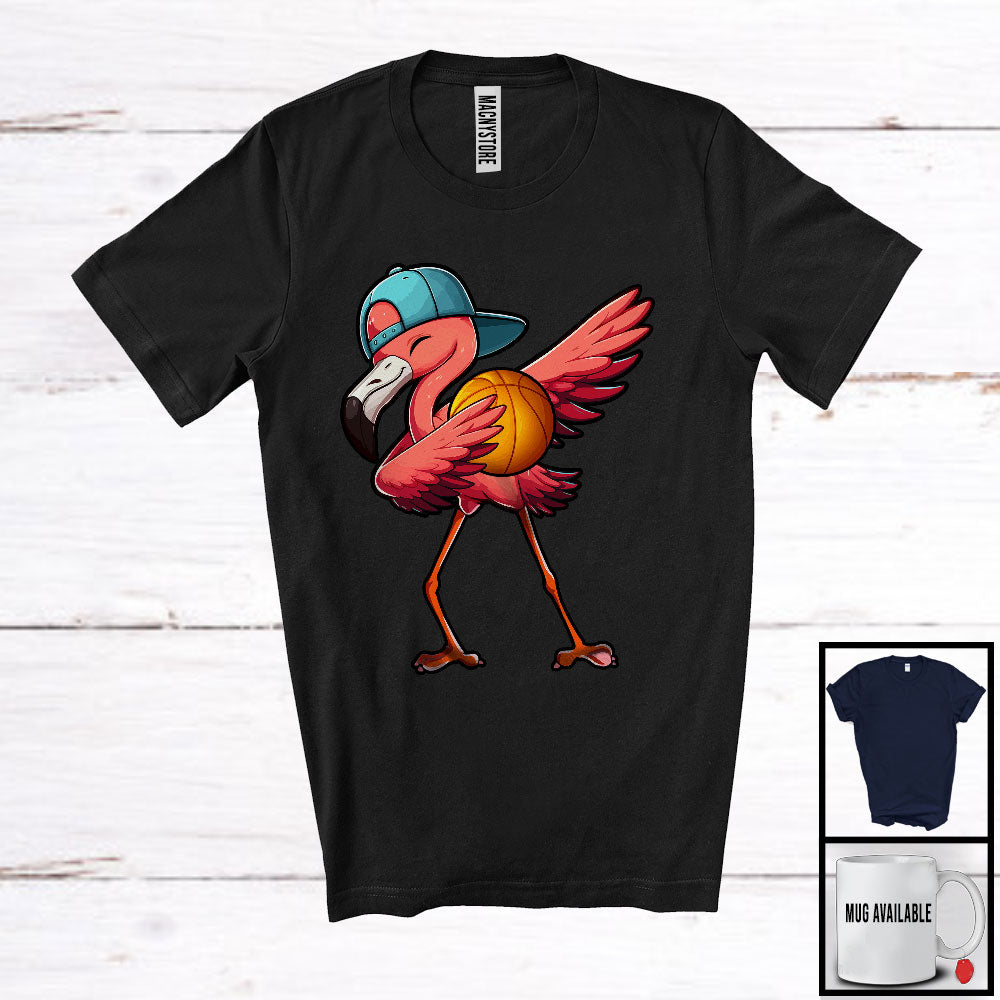 Dabbing Flamingo Playing Basketball, Adorable Flamingo Lover, Sport Playing Player Trainer Team T-Shirt