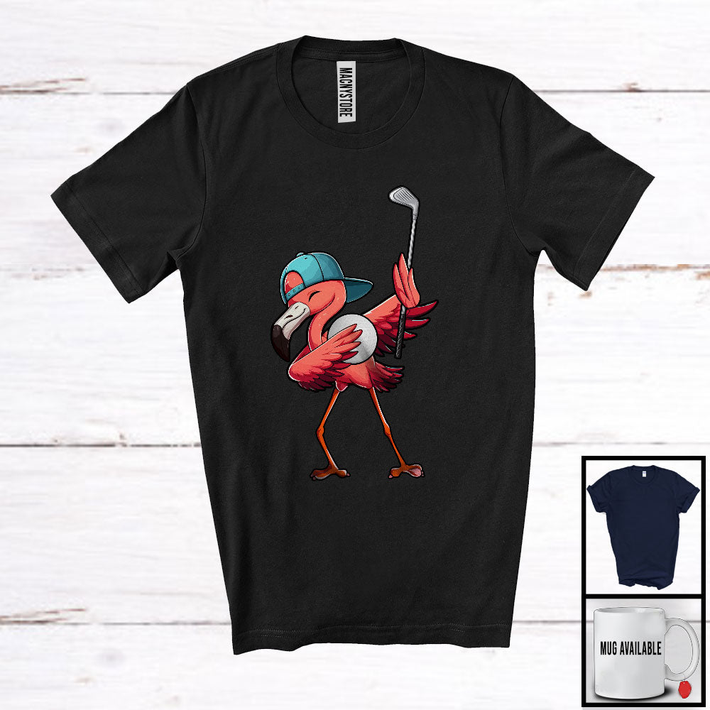 Dabbing Flamingo Playing Golf, Adorable Flamingo Lover, Sport Playing Player Trainer Team T-Shirt