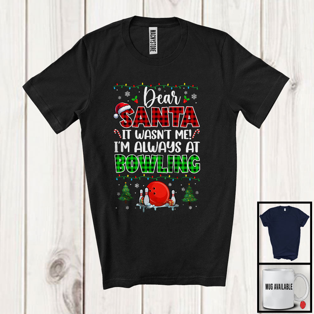 Dear Santa It Wasn't Me Always At Bowling; Fantastic Christmas Plaid; Sport Playing Player Team T-Shirt