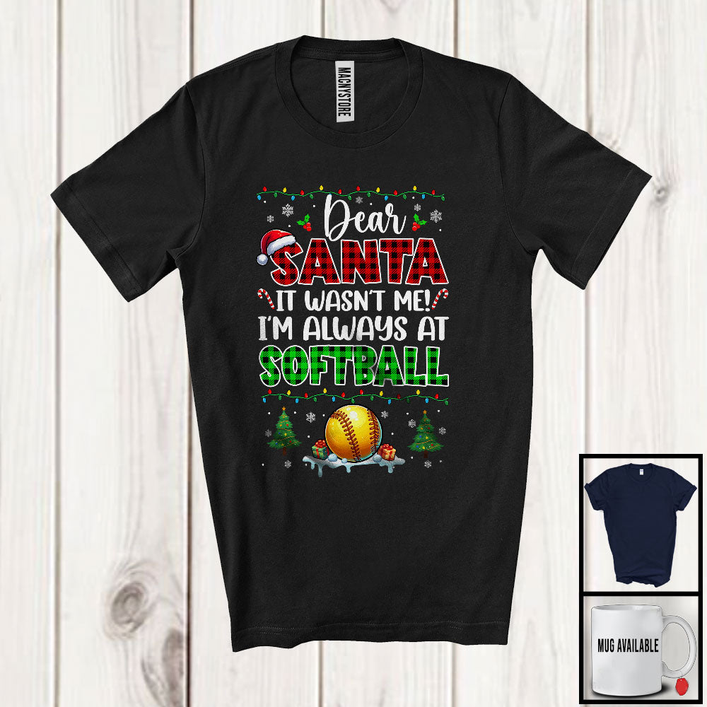 Dear Santa It Wasn't Me Always At Softball; Fantastic Christmas Plaid; Sport Playing Player Team T-Shirt