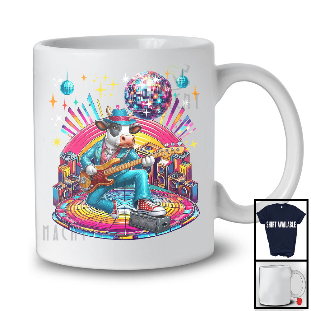 Disco Cow Playing Guitar; Cheerful Farmer Guitarist Cow Music Lover; Matching Wild Animal T-Shirt