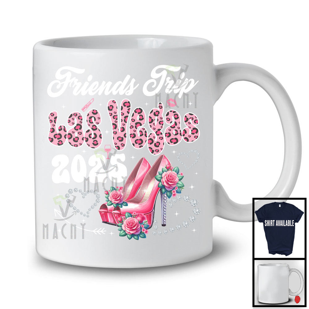 This Friends Trip Las Vegas 2025; Joyful Vacation Pink Leopard High Heels Flowers; Friends Family T-Shirt is great idea gift for your family, friends in this birthday, christmas, mother's day, father's day, patrick's day or any holiday.