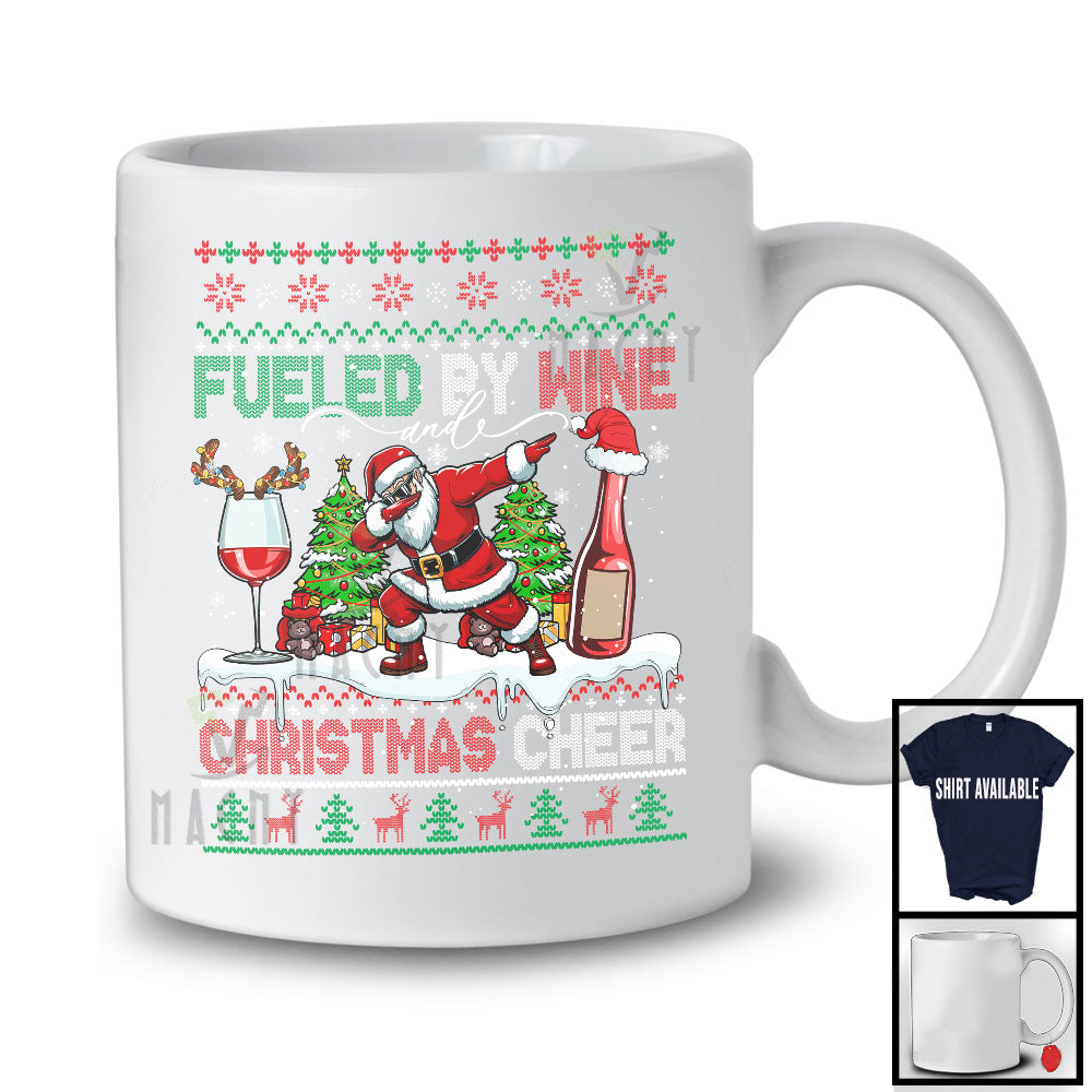 • Fueled By Wine And Christmas Cheer; Joyful Sweater Dabbing Santa Wine; Drinking Drunker T-Shirt. This cotton t-shirt is a durable staple product with a classic fit. One of the most popular items, it has a relaxed style made for everyday and casual wear.