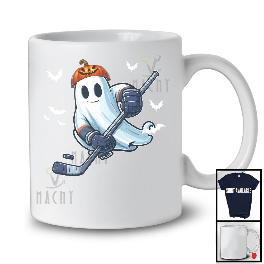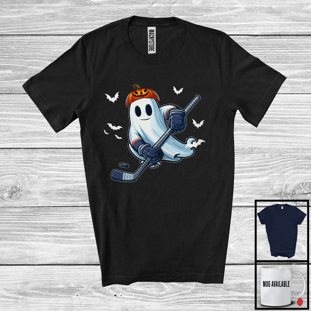 Ghost Playing Hockey, Scary Halloween Costume Hockey Player Playing Lover, Sport Team T-Shirt
