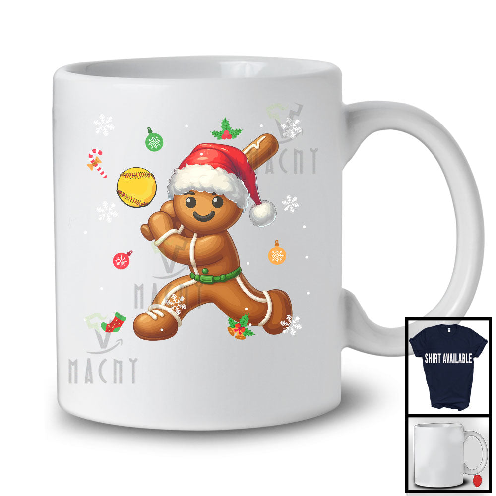 new MacnyStore - Gingerbread Playing Softball; Awesome Christmas Santa Gingerbread; Sport Player Baker T-Shirt – Macnystore