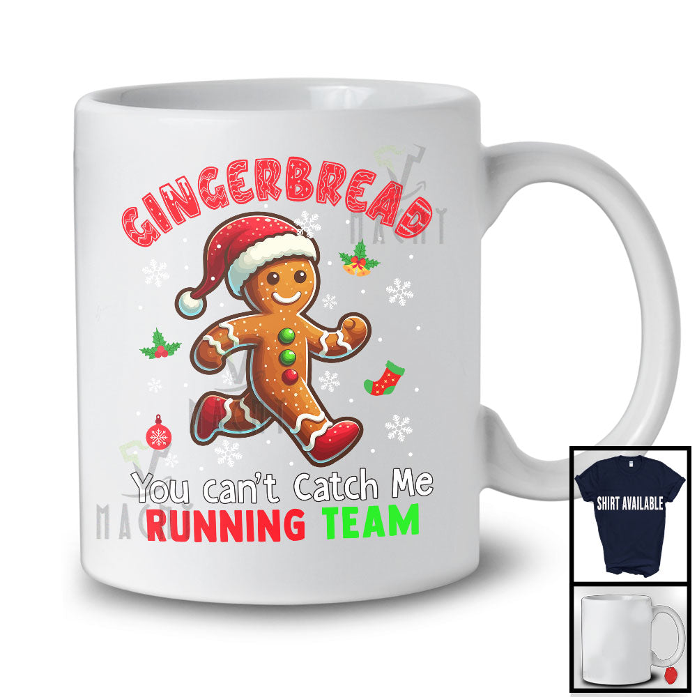 Gingerbread You Can't Catch Me Running Team; Amazing Christmas Santa Gingerbread; Runner Snow T-Shirt. This cotton t-shirt is a durable staple product with a classic fit. One of the most popular items, it has a relaxed style made for everyday and casual wear.