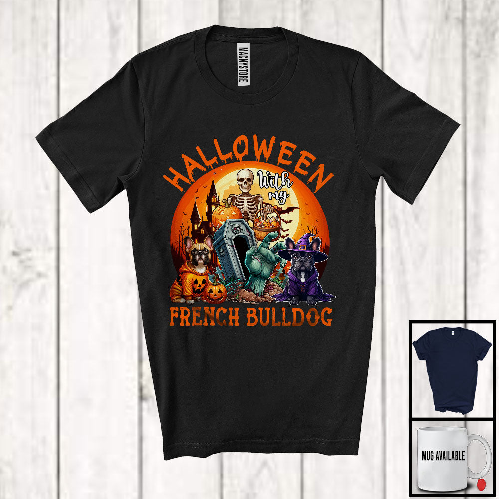 new MacnyStore - Halloween With My French Bulldog; Scary Moon Skeleton Zombie Hand; Pumpkin Candy Lover T-Shirt – Macnystore