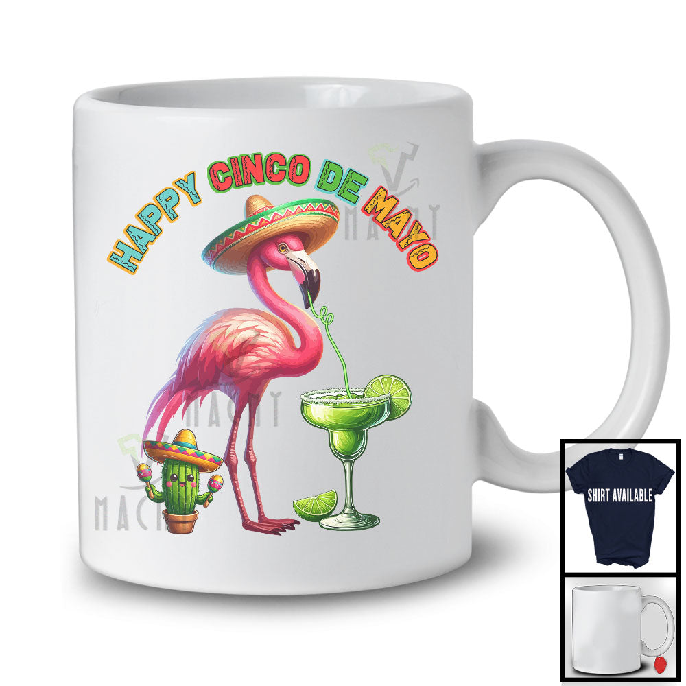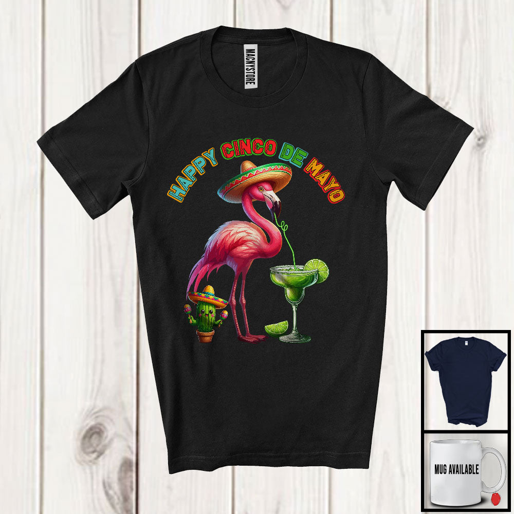 Happy Cinco De Mayo, Lovely Mexican Flamingo Sombrero Drinking Margarita Lover, Family Group T-Shirt