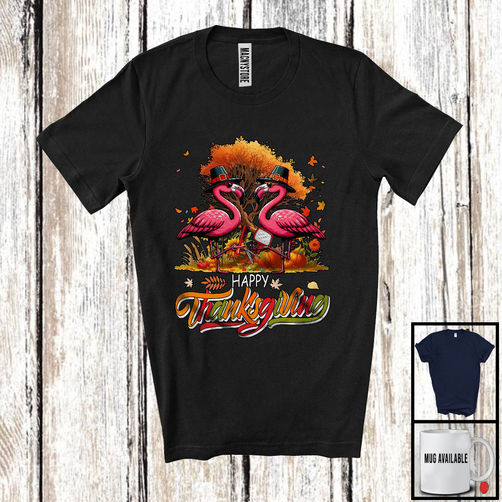 new MacnyStore - Happy Thanksgiving; Adorable Fall Tree Two Pilgrim Flamingos Barber; Jobs Family Group T-Shirt – Macnystore