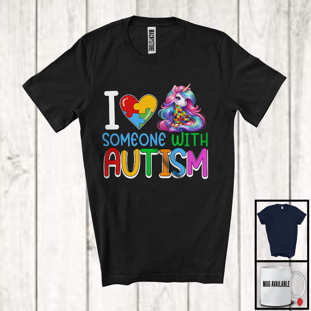 I Love Someone With Autism, Lovely Autism Awareness Unicorn Lover, Puzzle Animal Family Group T-Shirt
