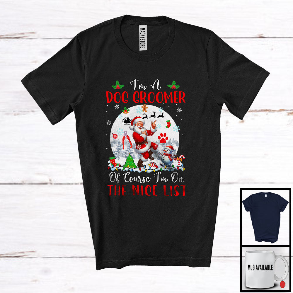 I'm A Dog Groomer I'm On The Nice List; Amazing Christmas Moon Santa Dog Groomer; X-mas Jobs T-Shirt