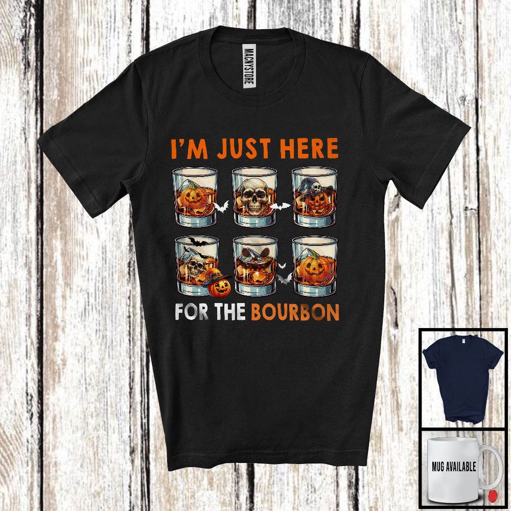 • Life is too short to live without the I'm Just Here For The Bourbon; Creepy Halloween Skull Drinking Drunker; Family Group T-Shirt. Be happy. Be Content. Be Satisfied.