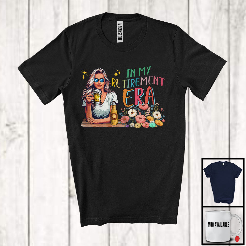 new MacnyStore - In My Retirement Era, Humorous Retired Women Drinking Beer, Flowers Drunker Family Group T-Shirt – Macnystore
