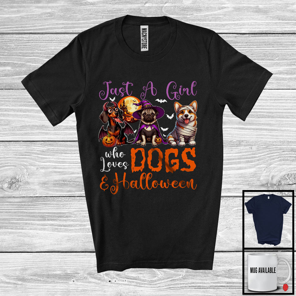 Just A Girl Who Loves Dogs And Halloween, Scary Halloween Witch Mummy Zombie Dogs, Animal Lover T-Shirt