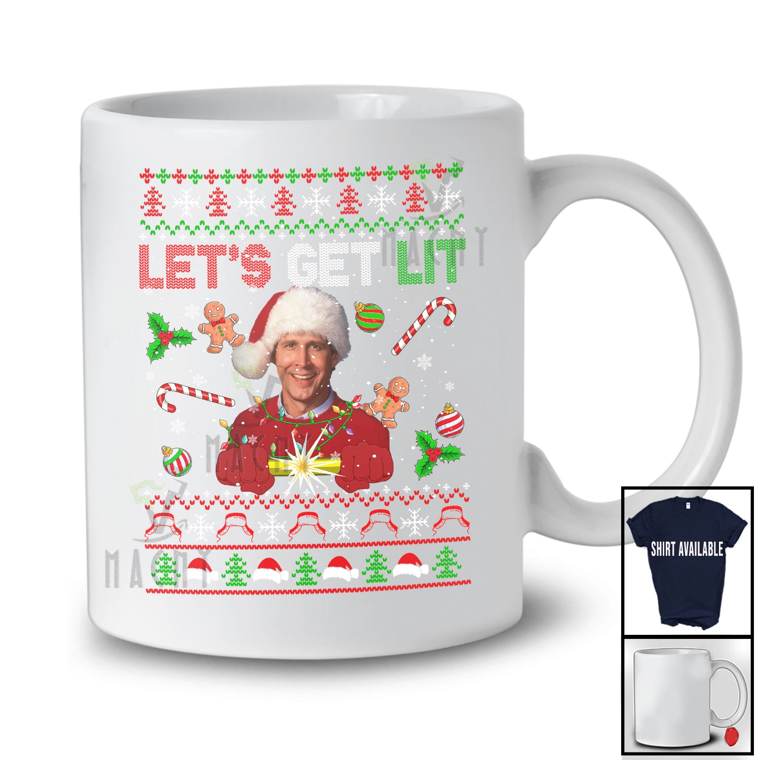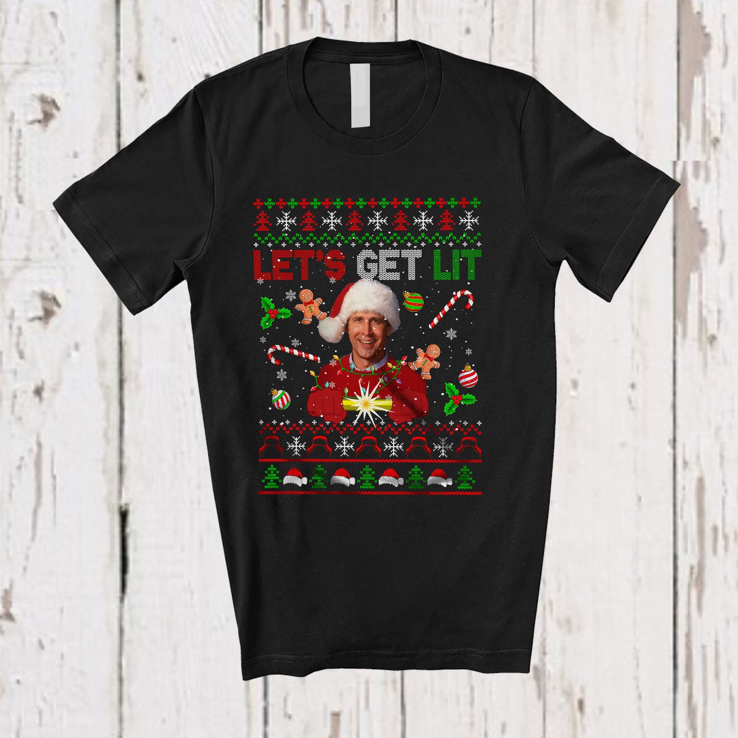 Let's Get Lit; Humorous Christmas Movie Nerd Santa Vacation; Sweater X-mas Lights Snowing T-Shirt. This cotton t-shirt is a durable staple product with a classic fit. One of the most popular items, it has a relaxed style made for everyday and casual wear.