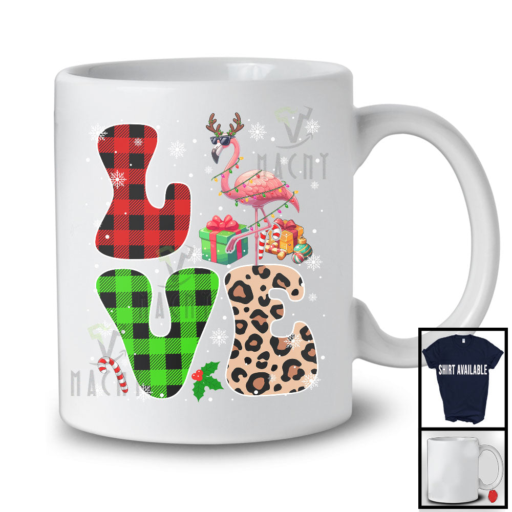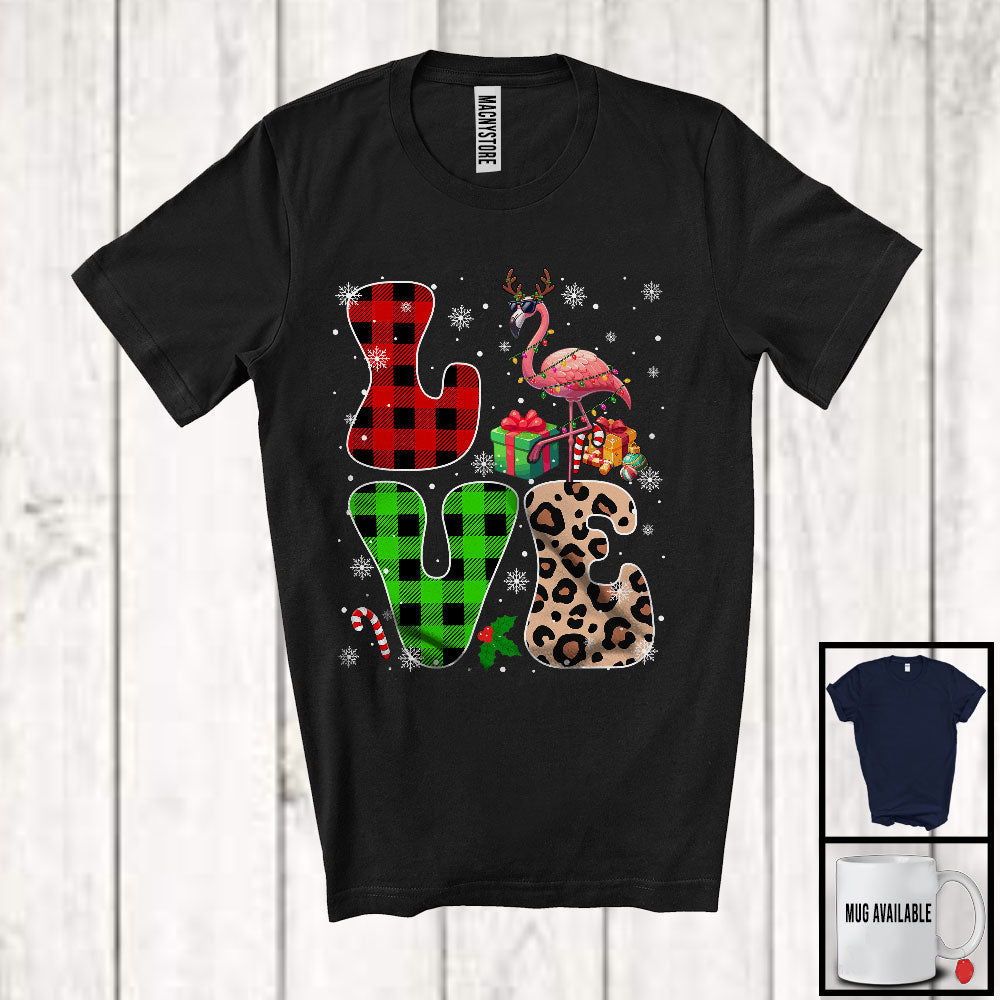 new MacnyStore - LOVE; Lovely Christmas Lights Leopard Plaid Flamingos; Matching Flamingos Lover Family Group T-Shirt – Macnystore