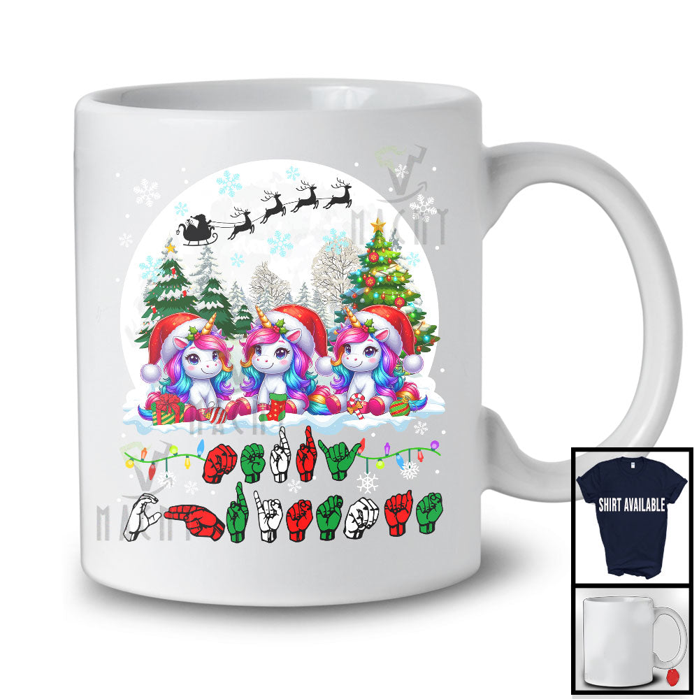 Merry Christmas; Adorable Three ASL Unicorns Lover; X-mas Moon Language Family Group T-Shirt