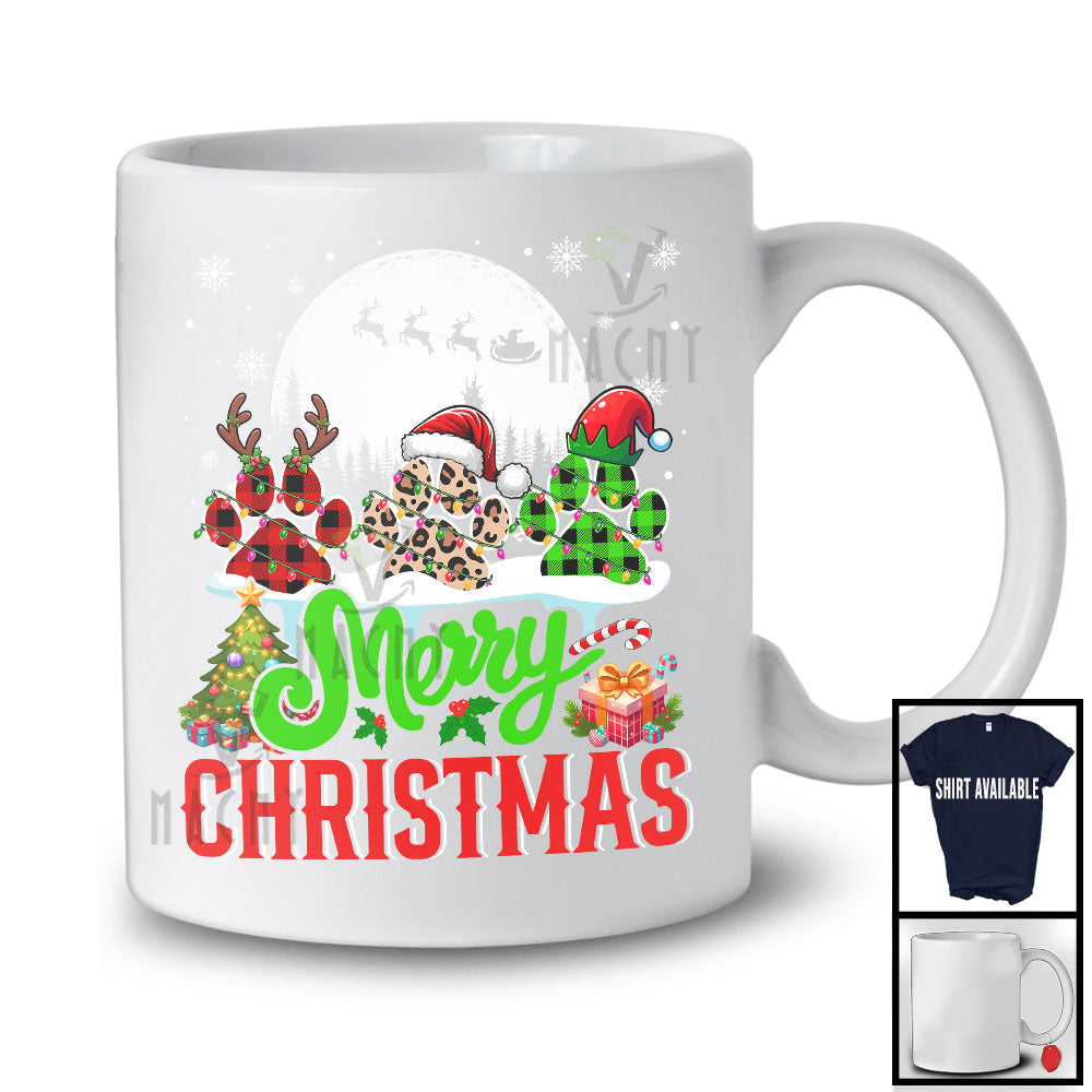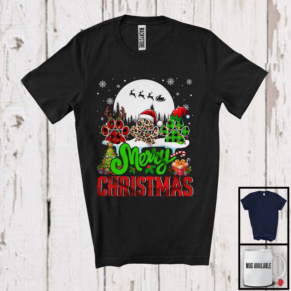Merry Christmas; Amazing X-mas Three Leopard Plaid Three Paw Dog Lover; Family Group T-Shirt