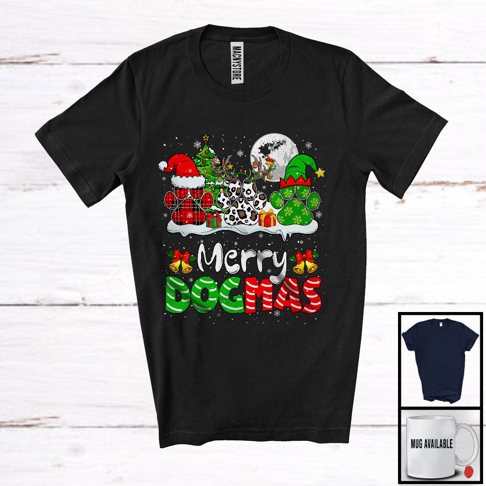 new MacnyStore - Merry Dogmas; Amazing Christmas Tree Leopard Plaid Dog Paws; X-mas Moon Snowing T-Shirt – Macnystore