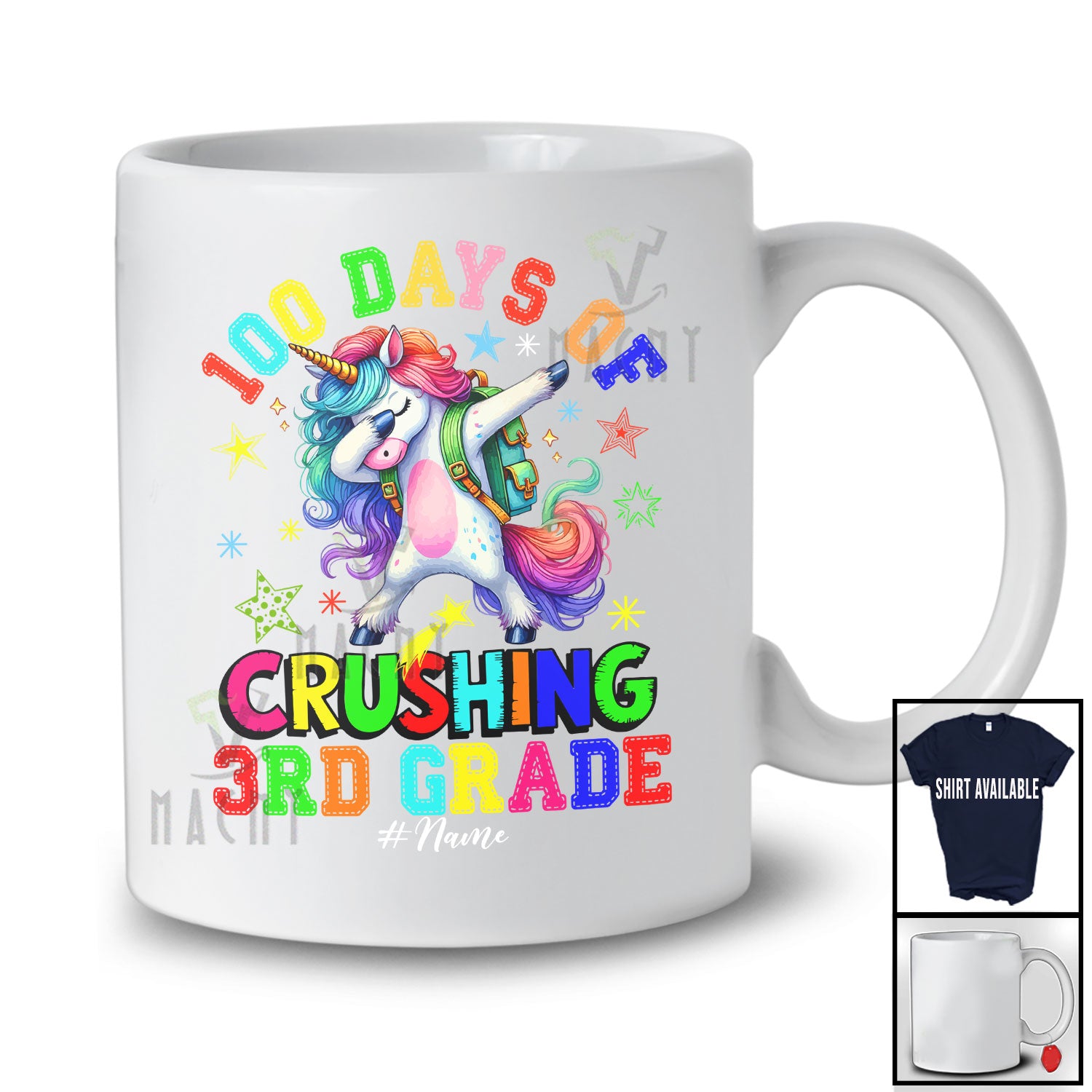 Personalized 100 Days Of Crushing 3rd Grade; Joyful Unicorn Dabbing; Custom Name Students T-Shirt. This cotton t-shirt is a durable staple product with a classic fit. One of the most popular items, it has a relaxed style made for everyday and casual wear.