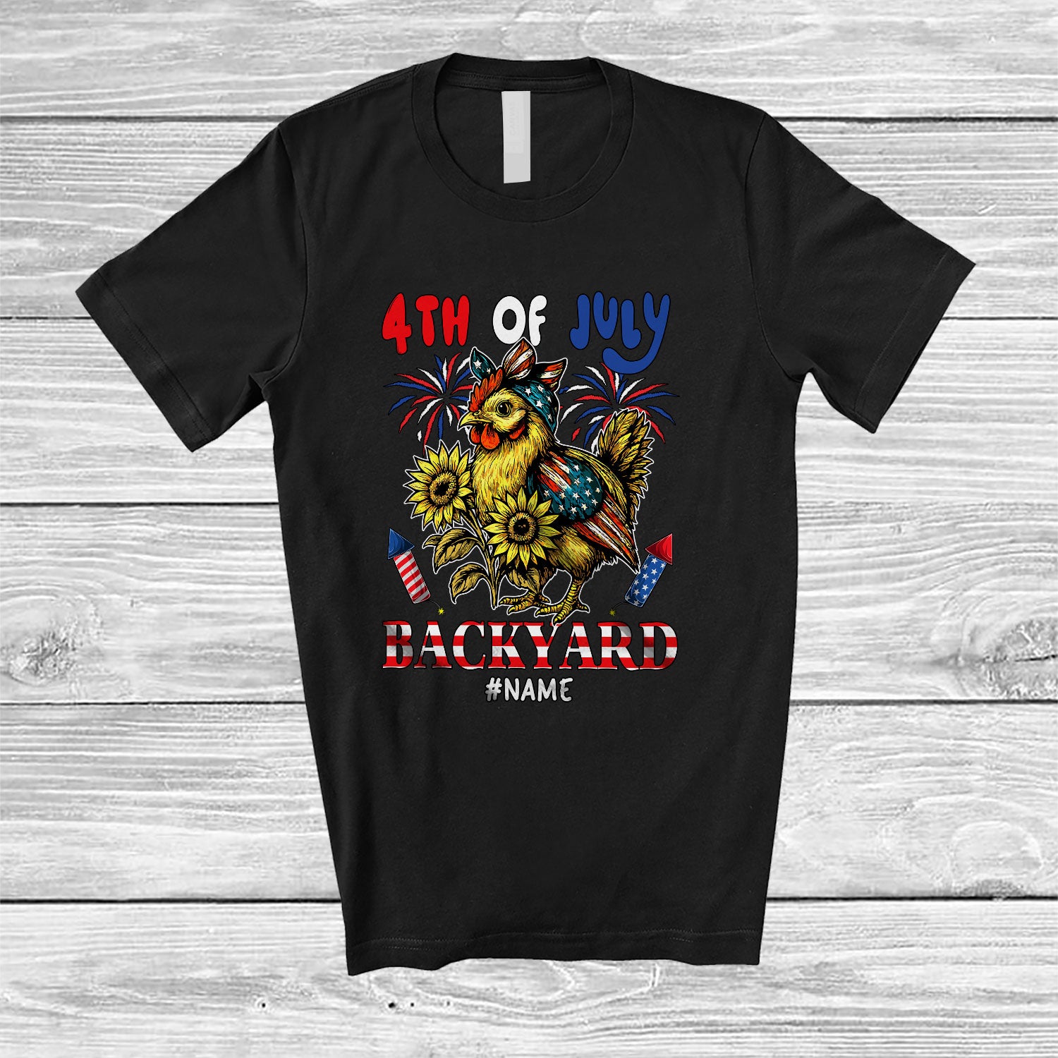 This Personalized 4th of July Backyard; Lovely Custom Name Chicken Farmer Patriotic; Farm Animal T-Shirt is great idea gift for your family, friends in this birthday, christmas, mother's day, father's day, patrick's day or any holiday.