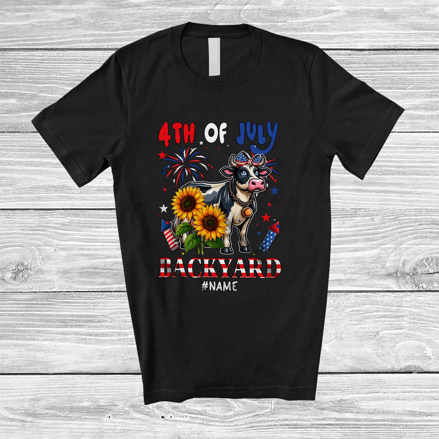 Personalized 4th of July Backyard; Lovely Custom Name Cow Farmer Patriotic; Farm Animal T-Shirt
