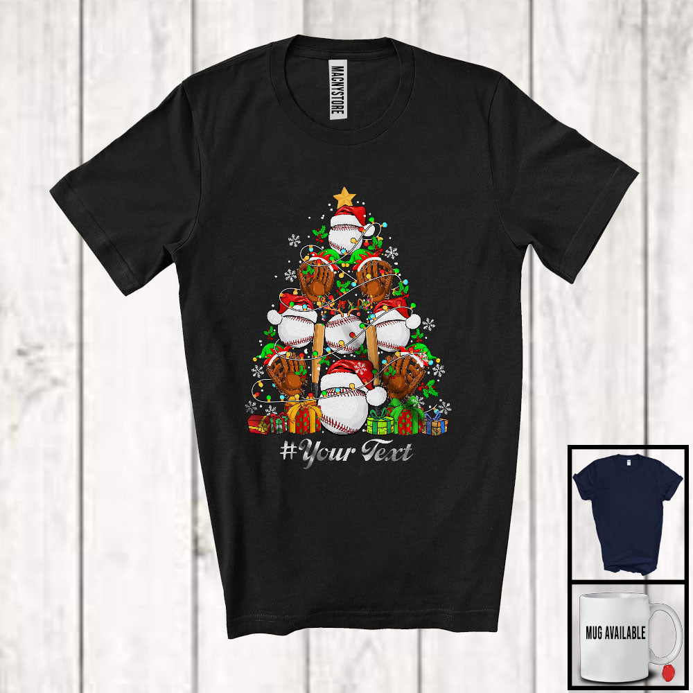 Personalized Baseball Equipment Christmas Tree; Merry X-mas Custom Text Sport Player T-Shirt