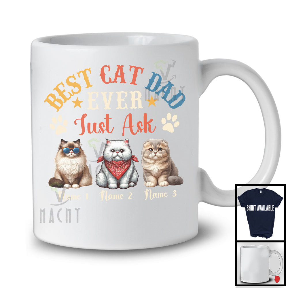 Personalized Best Cat Dad Ever Just Ask, Lovely Father's Day Three Cats Custom Name, Family T-Shirt