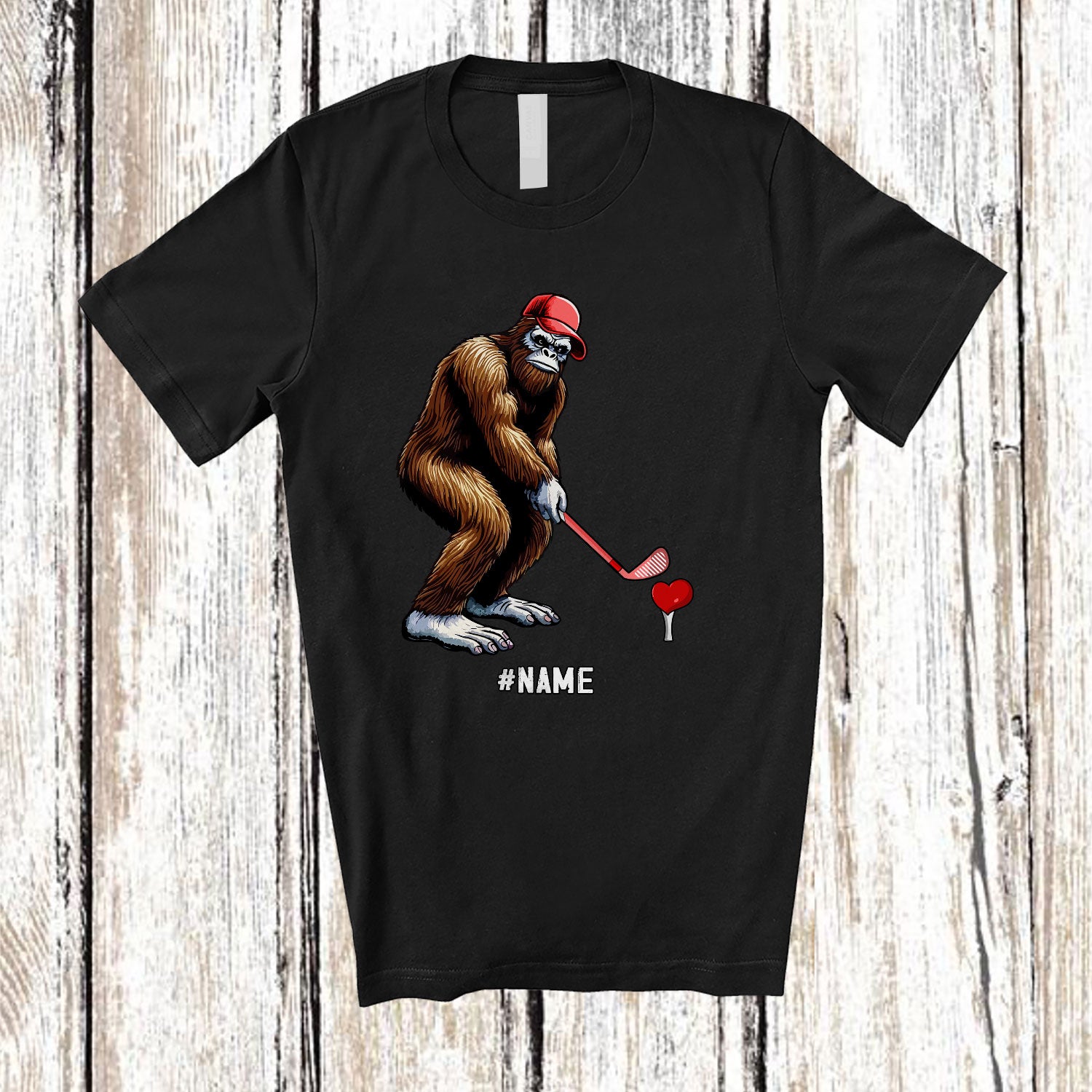 Personalized Bigfoot Playing Golf Hit Heart Away; Joyful Valentine Cusotm Name Sport Player T-Shirt