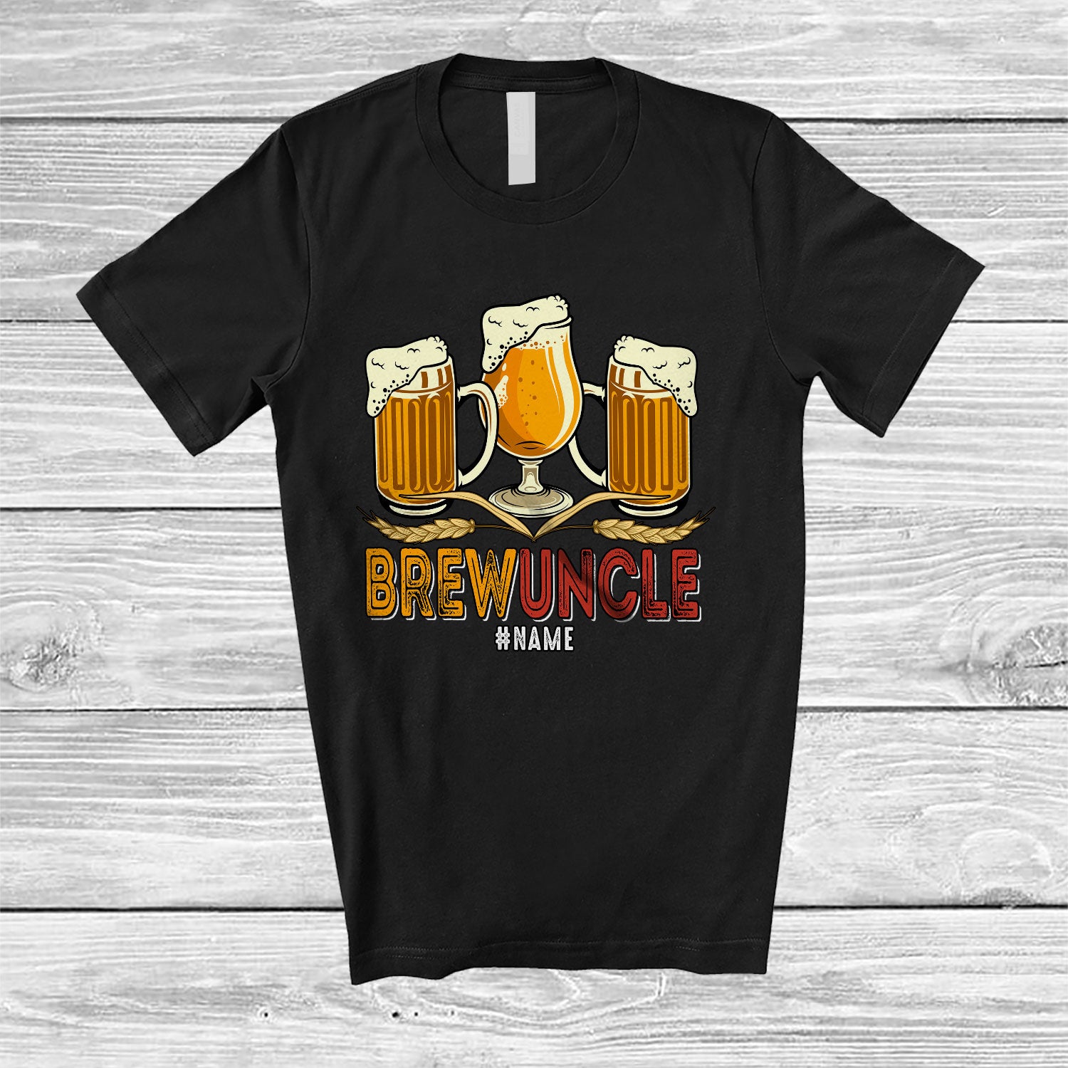 • Personalized BrewUncle; Humorous Father's Day Draft Beer Uncle; Custom Name Drinking T-Shirt. This cotton t-shirt is a durable staple product with a classic fit. One of the most popular items, it has a relaxed style made for everyday and casual wear.