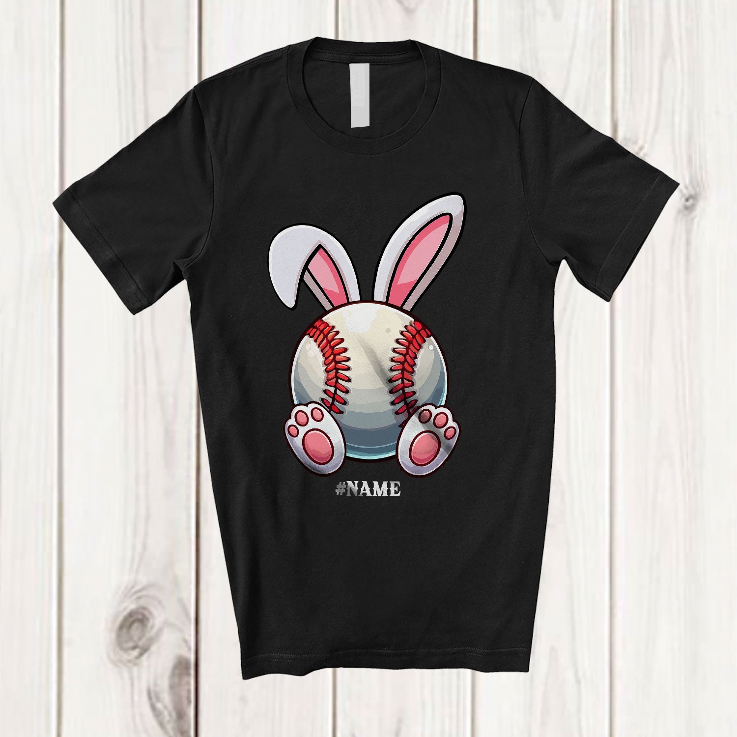 Personalized Bunny Baseball; Amazing Easter Day Bunny Baseball Sport; Custom Name Player T-Shirt. This cotton t-shirt is a durable staple product with a classic fit. One of the most popular items, it has a relaxed style made for everyday and casual wear.