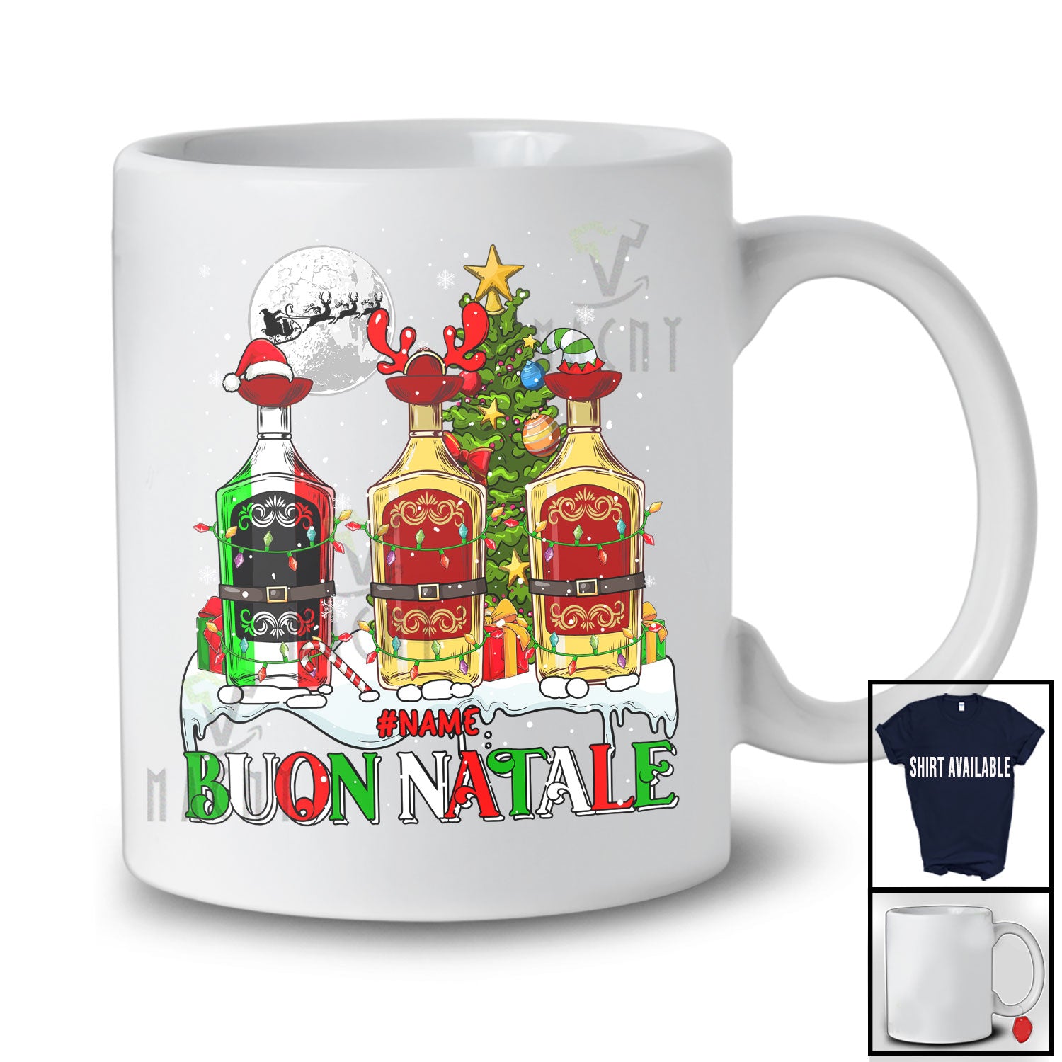 Personalized Buon Natale; Joyful Christmas Custom Name Italian Tequila of Glasses; Drunker Drinking T-Shirt