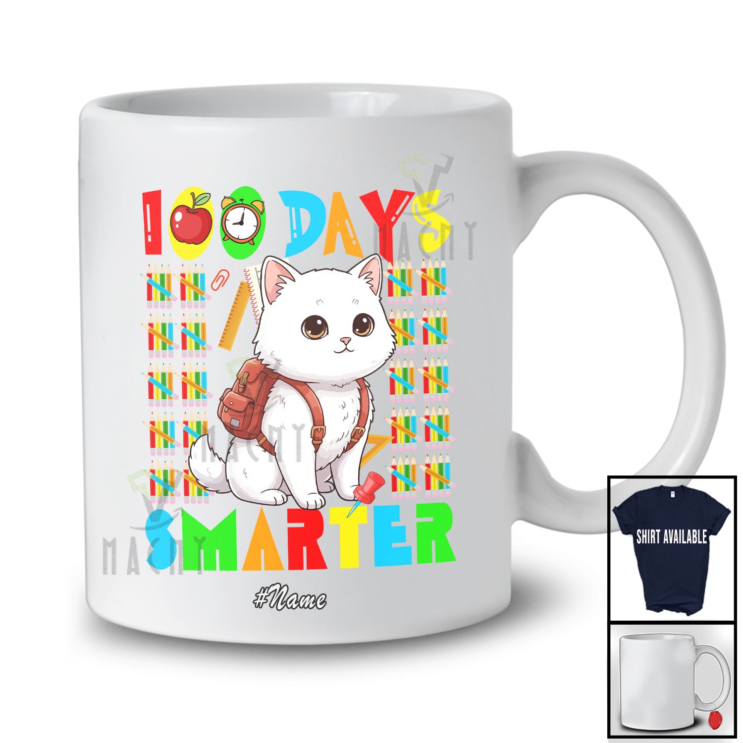 • Personalized Custom Name 100 Days Smarter; Lovely 100th Day Of School Cat Owner Lover T-Shirt. This cotton t-shirt is a durable staple product with a classic fit. One of the most popular items, it has a relaxed style made for everyday and casual wear.