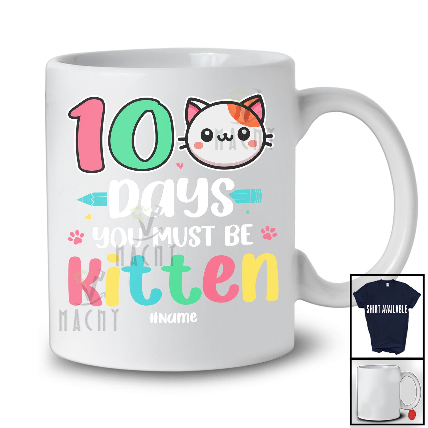 The Personalized Custom Name 100 Days You Must Be Kitten; Adorable 100th Day Of School Cat Face T-Shirt destined to impress, and priced at only $12.95, for a limited time.