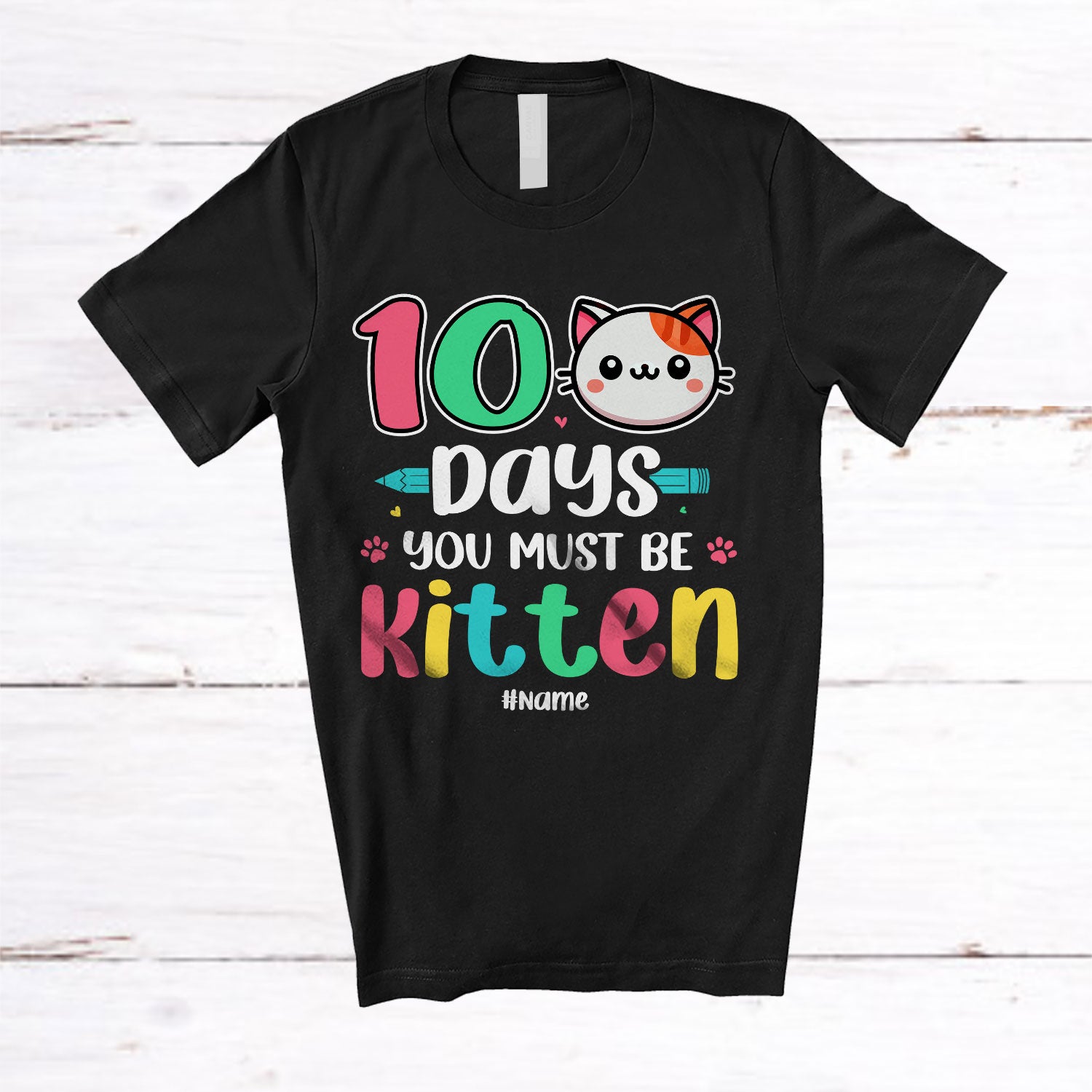 Personalized Custom Name 100 Days You Must Be Kitten; Adorable 100th Day Of School Cat Face T-Shirt. This cotton t-shirt is a durable staple product with a classic fit. One of the most popular items, it has a relaxed style made for everyday and casual wear.