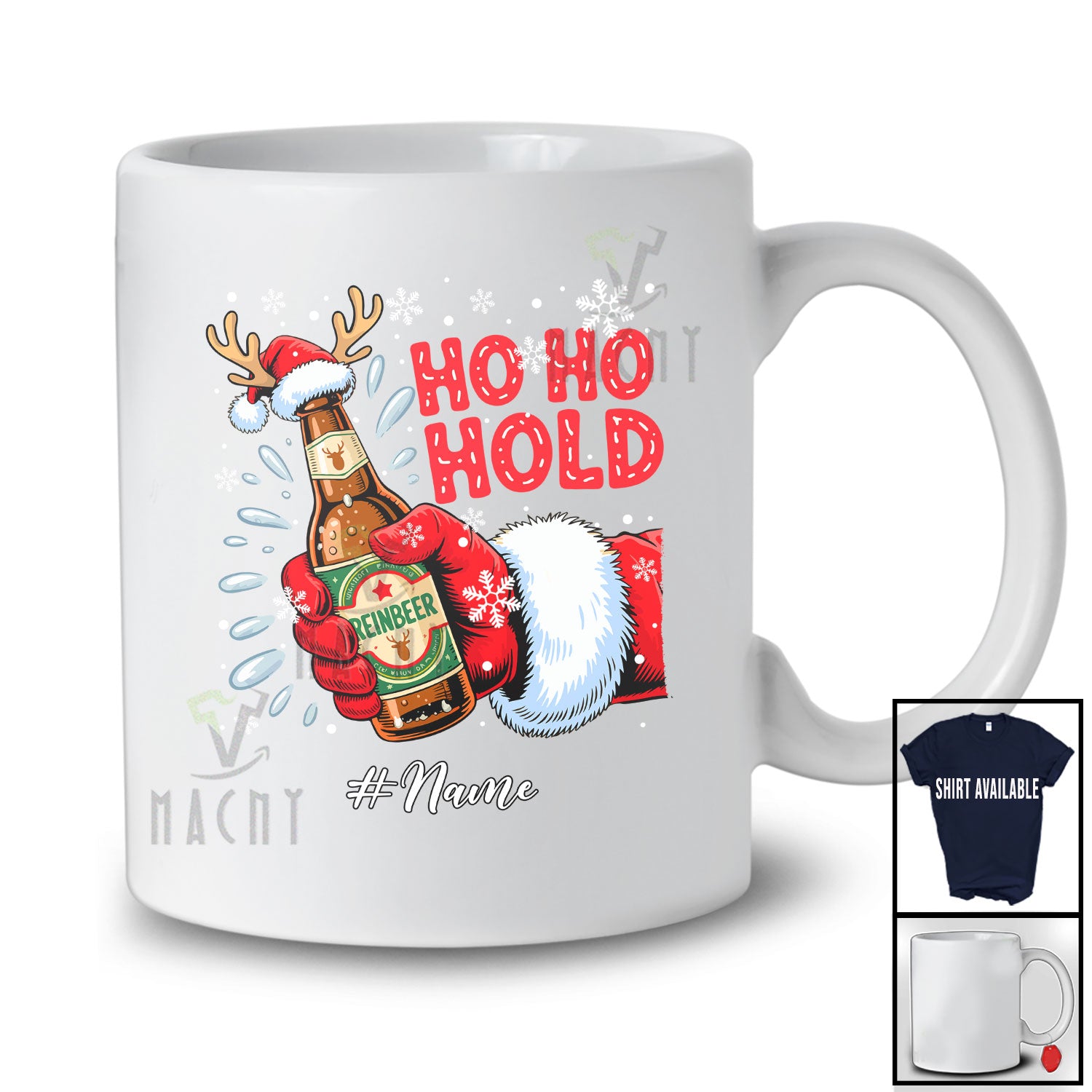 Personalized Custom Name 2 HoHold Reinbeer; Humorous Christmas Santa Holding Beer Drinking T-Shirt