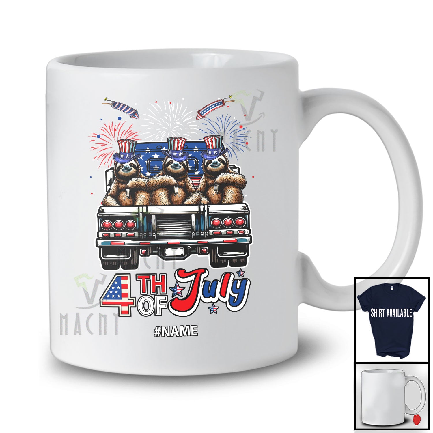 new MacnyStore - Personalized Custom Name 4th of July; Lovely Three US Flag Sloth On Truck; Patriotic T-Shirt – Macnystore