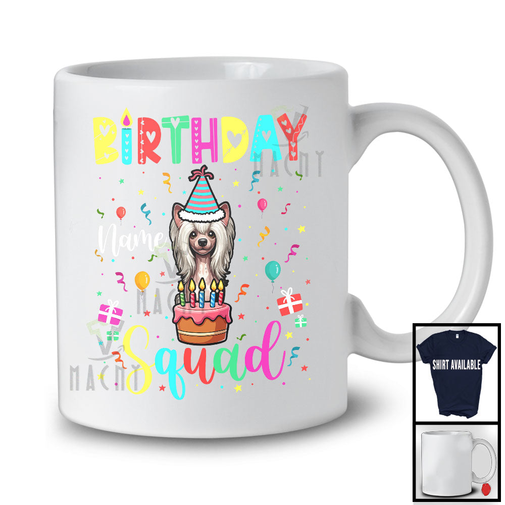 This Personalized Custom Name Birthday Squad; Lovely Chinese Crested Dog Owner; Birthday Cake T-Shirt is great idea gift for your family, friends in this birthday, christmas, mother's day, father's day, patrick's day or any holiday.