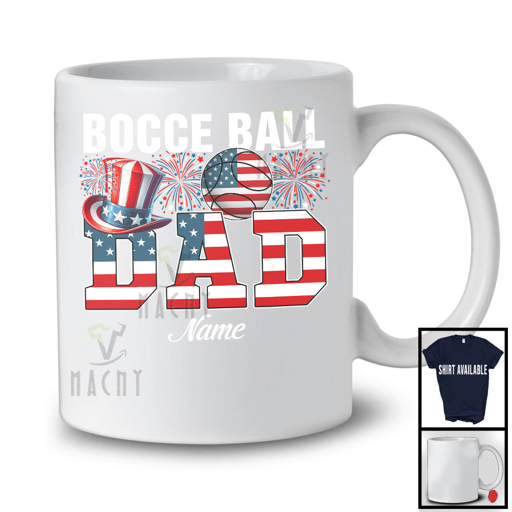 • Personalized Custom Name Bocce Ball Dad, Proud 4th Of July USA Flag Sport, Patriotic Family T-Shirt. This cotton t-shirt is a durable staple product with a classic fit. One of the most popular items, it has a relaxed style made for everyday and casual wear.