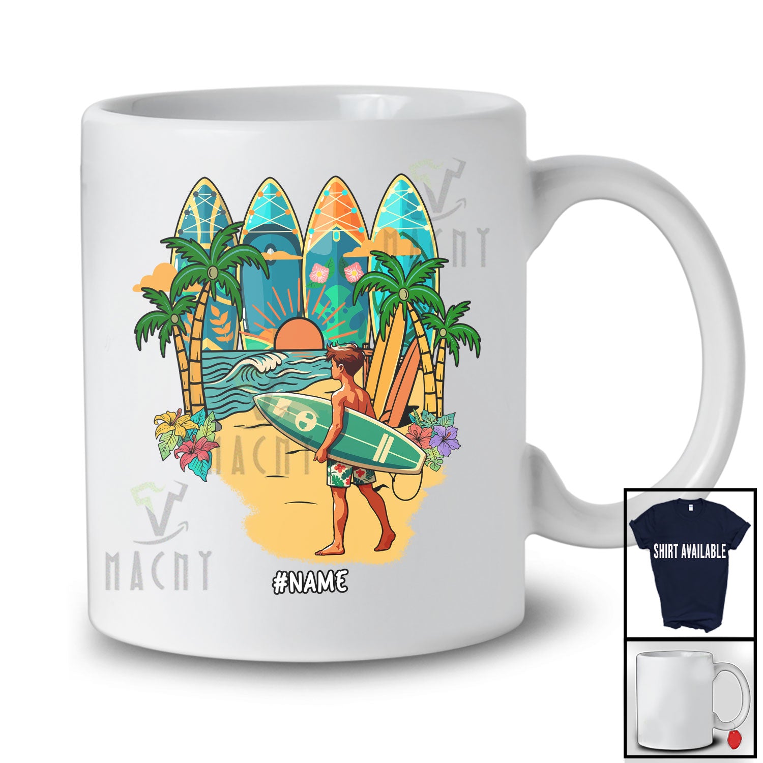 Personalized Custom Name Boy Go Surfing; Joyful Summer Vacation Surfer; Hawaiian Family T-Shirt. This cotton t-shirt is a durable staple product with a classic fit. One of the most popular items, it has a relaxed style made for everyday and casual wear.
