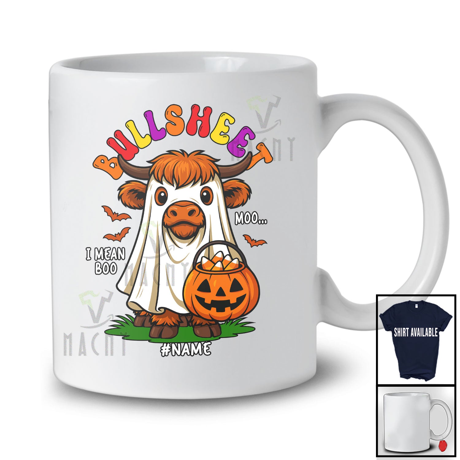 • Personalized Custom Name Bullsheet Moo; Lovely Halloween Groovy Boo Heifer Cow Farmer T-Shirt. This cotton t-shirt is a durable staple product with a classic fit. One of the most popular items, it has a relaxed style made for everyday and casual wear.