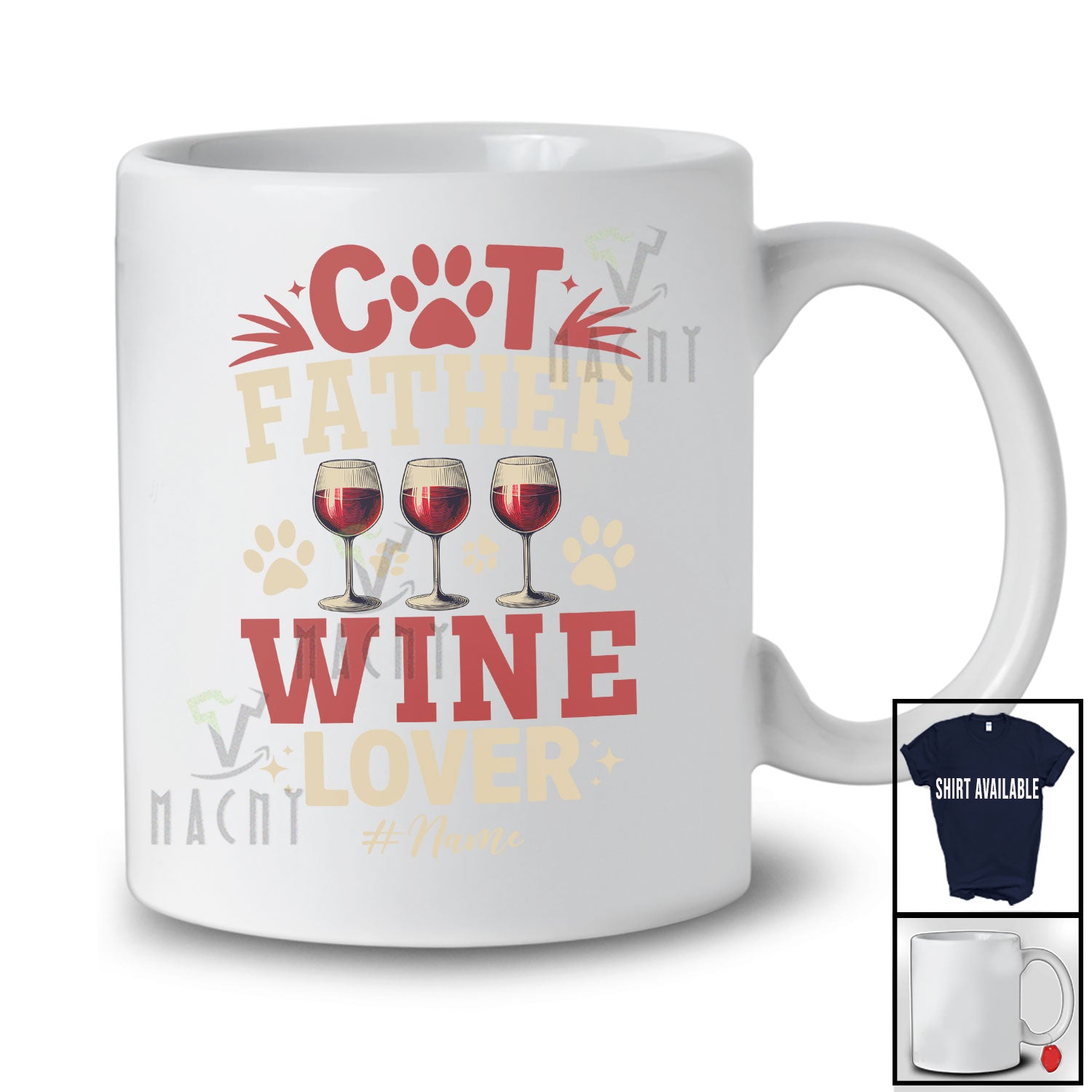 Personalized Custom Name Cat Father Wine Lover; Humorous Father's Day Drinking Drunker; Family T-Shirt. This cotton t-shirt is a durable staple product with a classic fit. One of the most popular items, it has a relaxed style made for everyday and casual wear.