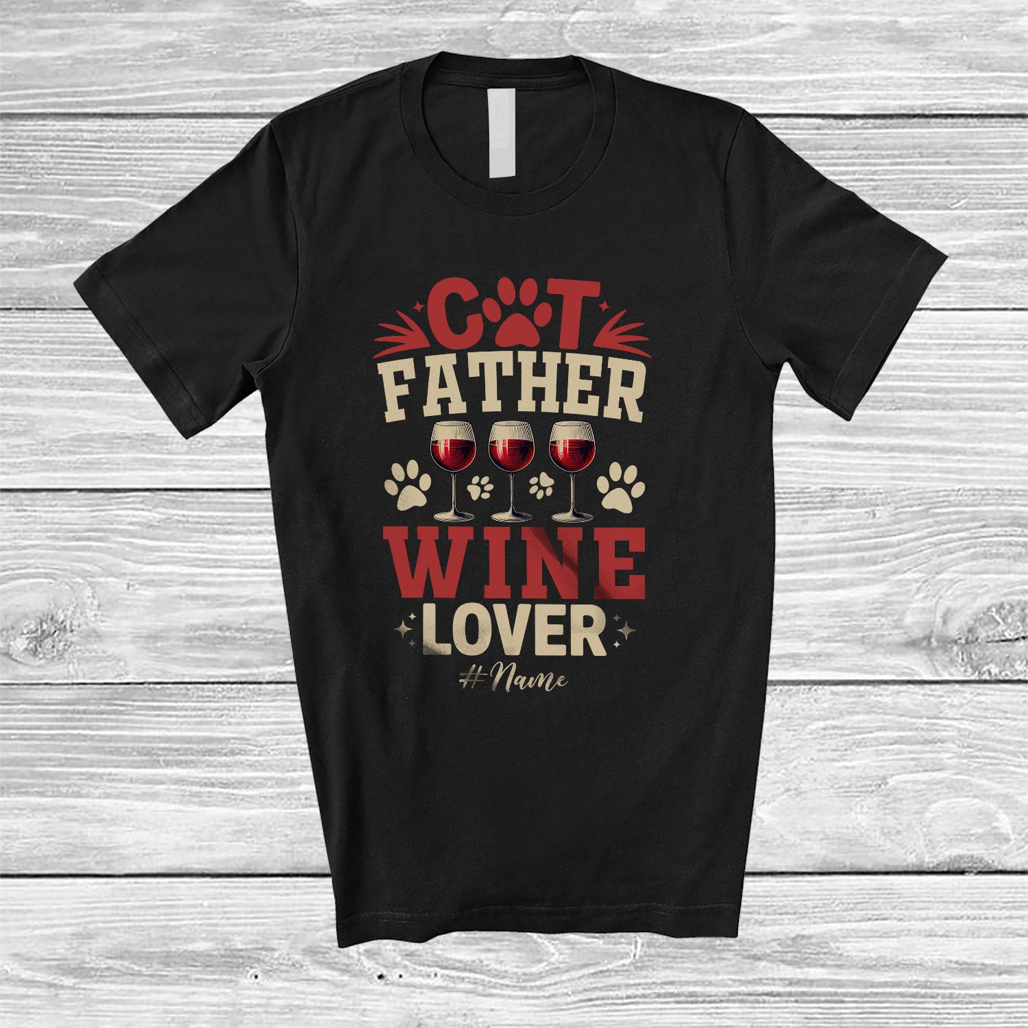 Personalized Custom Name Cat Father Wine Lover; Humorous Father's Day Drinking Drunker; Family T-Shirt